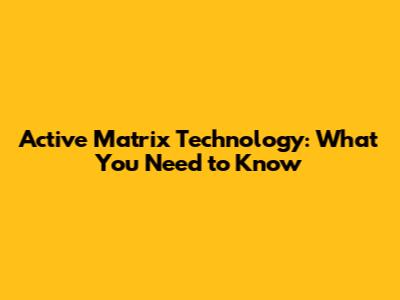 Understanding Active Matrix Technology