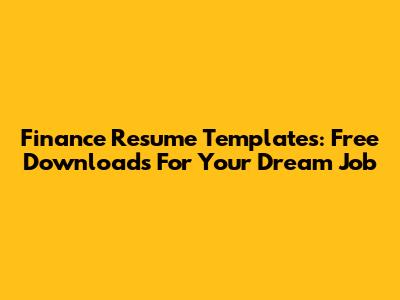 Finance Resume Templates: Free Downloads For Your Dream Job