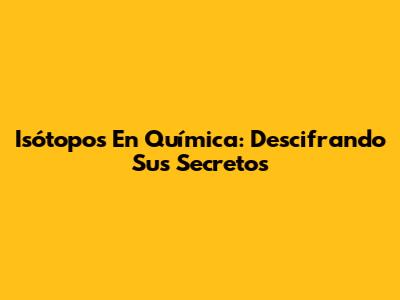 Isótopos En Química: Descifrando Sus Secretos