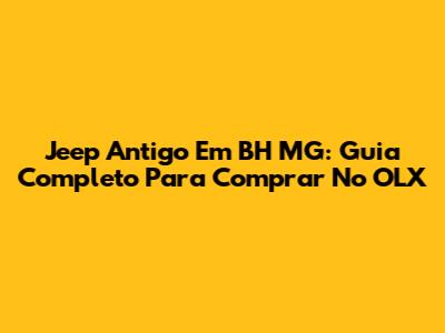 Jeep Antigo Em BH MG: Guia Completo Para Comprar No OLX