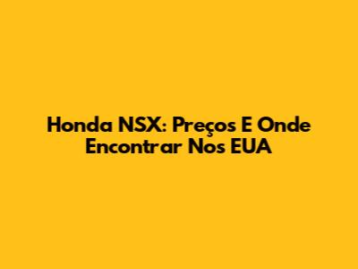 Honda NSX: Preços E Onde Encontrar Nos EUA
