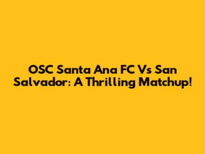 OSC Santa Ana FC Vs San Salvador: A Thrilling Matchup!