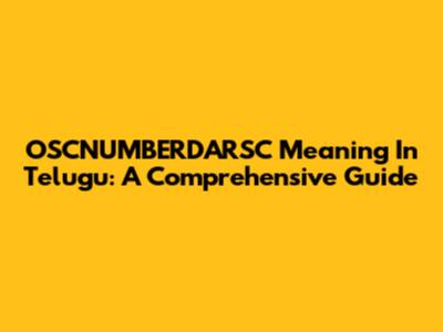 OSCNUMBERDARSC Meaning In Telugu: A Comprehensive Guide