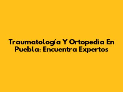 Traumatología Y Ortopedia En Puebla: Encuentra Expertos